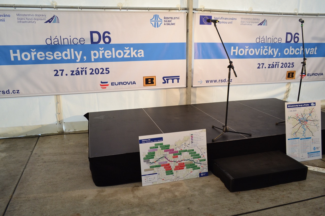 Ředitelství silnic a dálnic (ŘSD) zprovoznilo v sobotu 27. 9. 2025 dva úseky dálnice D6 dohromady dlouhé 14,4 kilometru. Jedná se o stavby Hořesedly, přeložka a Hořovičky, obchvat. ŘSD tak dokončilo výstavbu dálnice D6 ve Středočeském kraji. Práce zatím vyšly na víc než 3,8 miliardy Kč bez DPH, z toho téměř 60 procent zaplatí Evropská unie. ŘSD zároveň zprovoznilo odpočívku Kolešov, kde je 62 míst pro nákladní auta a 107 pro osobní.